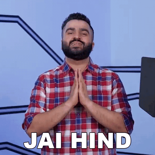 Bhavin Kotwani, also known as Hellranger, greets with "Jai Hind" in a plaid shirt.