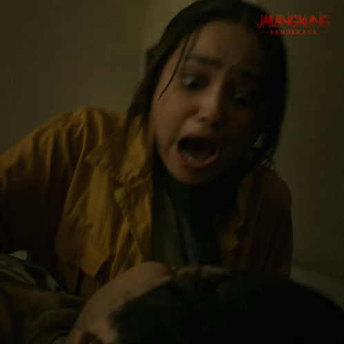Syifa Hadju's terrified scream in a close-up from the horror film Jailangkung Sandekala.