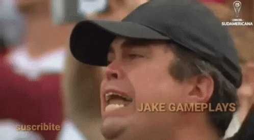 Emotional fan, identified as Jake Gameplays, crying during a CONMEBOL Sudamericana football match.