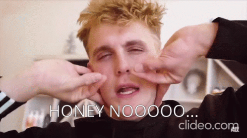 Jake Paul's face is comically distorted by hands while the text "HONEY NOOOOO..." appears on screen.