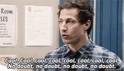 Jake Peralta from Brooklyn Nine-Nine delivers his signature 'Cool, cool, cool, no doubt' line.