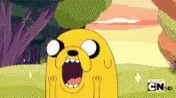 Jake from Adventure Time with his mouth wide open, expressing shock and disbelief.