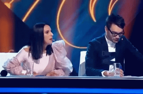 Jamala and Maruv on a judging panel, with Jamala speaking animatedly and Maruv taking notes.