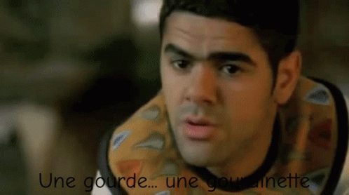 Jamel Debbouze in a comedic scene, saying 'Une gourde... une gourdinette' with an older man reacting.