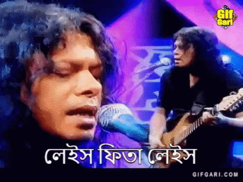 James Bangladesh, also known as Nagar Baul, performs his song 'Leis Fita Leis' while singing into a microphone with a guitarist.