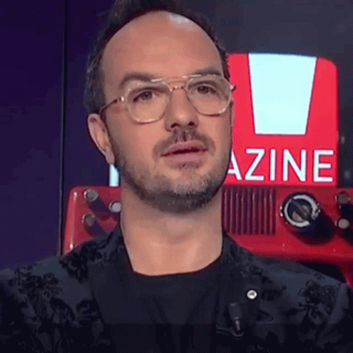 Jarry with a surprised expression, wearing glasses and a patterned jacket.