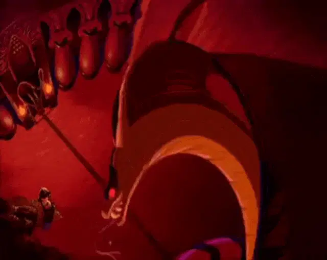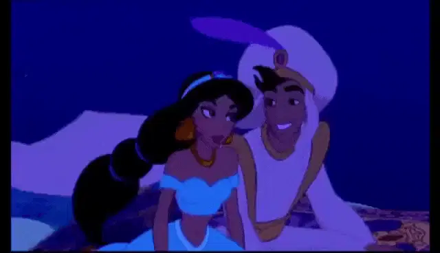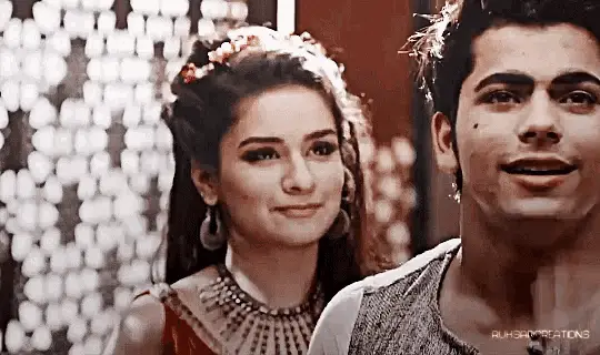 Jafar touches Princess Jasmine's face in a tense scene from Disney's live-action Aladdin.