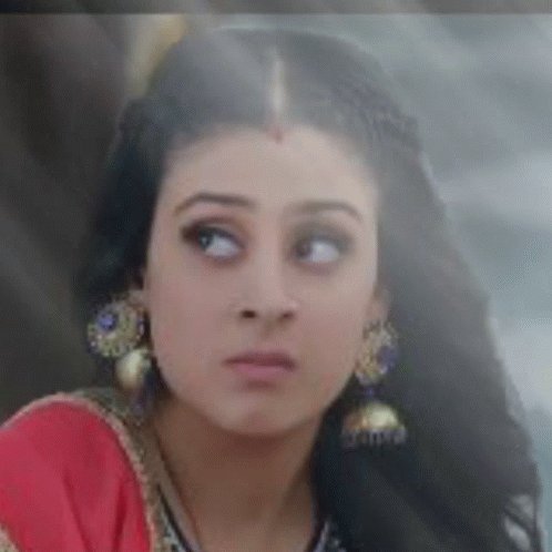 Jasmine Jassu makes a funny, annoyed face as a cracked screen effect appears over her. She wears traditional Indian attire.
