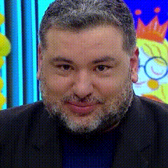 Javier Masías from El Gran Chef Famosos smiles warmly in front of a vibrant, colorful background.