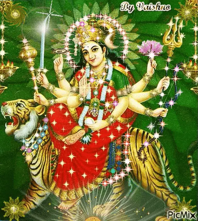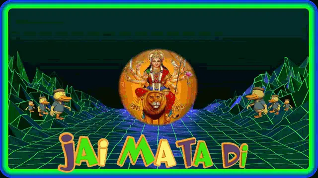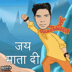 Animated character with a personalized head, celebrating with the Hindi phrase 'Jai Mata Di'.