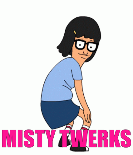 Tina Belcher from Bob's Burgers performing a twerk, with the text 'MISTY TWERKS'.