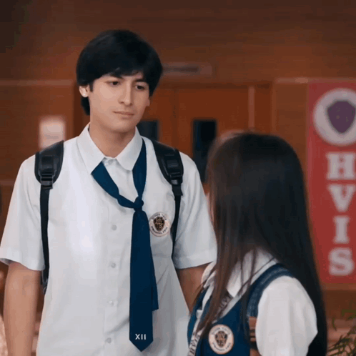 Jayfer, also known as Keifer, struggles to tie his school tie, looking innocently at a girl for help.