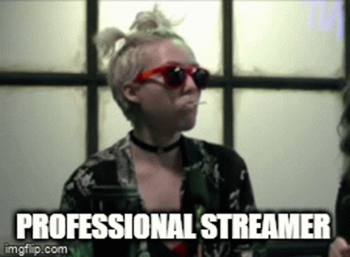 Josephine Mc Adam, wearing red sunglasses and a choker, makes a gesture while the text 'Professional Streamer' is displayed.