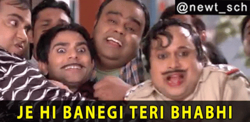 Malkhan and other men from 'Bhabiji Ghar Par Hain' in a humorous scene with the caption 'She will become your sister-in-law'.