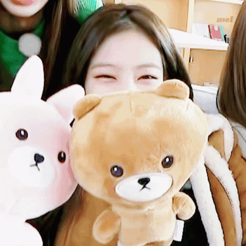 Jennie Seulisasoo smiles brightly while holding a cute teddy bear plushie.