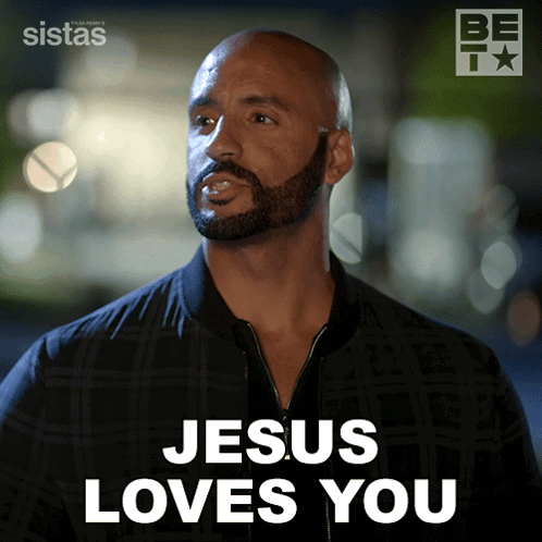 A character from BET's Sistas delivers the message 'Jesus Loves You', featuring Aaron Carter as per original title.