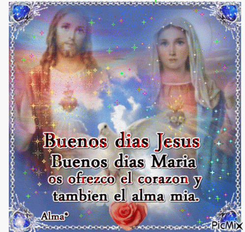 A religious image of Jesus and Mary with a Spanish greeting, offering heart and soul.