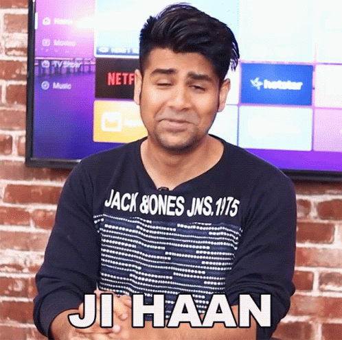 Abhishek Sagar, wearing a Jack & Jones shirt, smiles and says 'Ji Haan' in front of a TV.