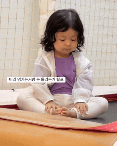 Jian Baby sits on a trampoline, showing off cute expressions like flipping her hair and rolling her eyes.