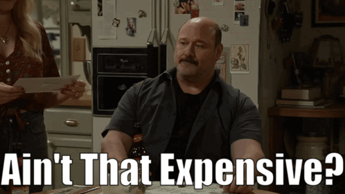 a man sitting at a table with the words " ain t that expensive " on the bottom