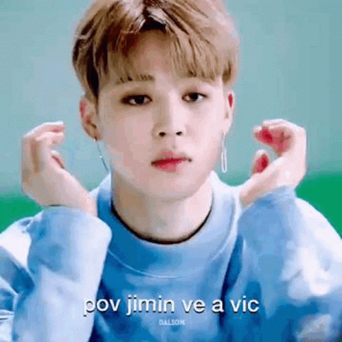 Jimin of BTS makes an adorable pout and cute face, as if seeing 'Vic'.