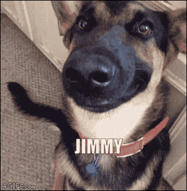 Jimmy, a German Shepherd, makes a funny face and asks 'Fancy some EFT?? PLEEEEEEEEEEASE' with comical expressions.