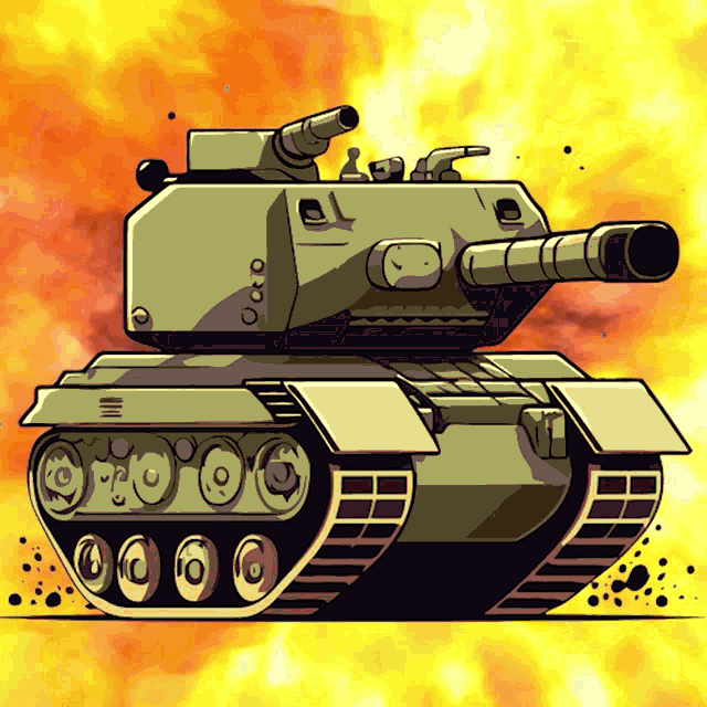 A cartoon tank, part of the Jimmy Tanks Icon series, stands ready for battle against a fiery background.