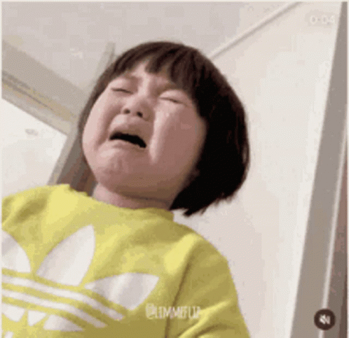 Jinmiran Coreaninha, the little Korean girl, is seen crying intensely in a yellow Adidas sweatshirt.
