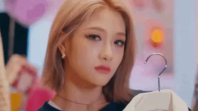 Noh Jisun from fromis_9 holds a plate of food in a cafeteria, ready to enjoy her meal.