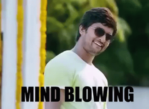 Actor Nani in sunglasses, making a gesture with 'Mind Blowing' text overlay.