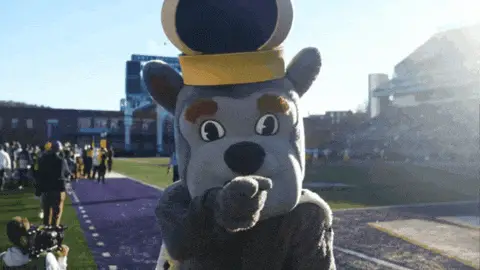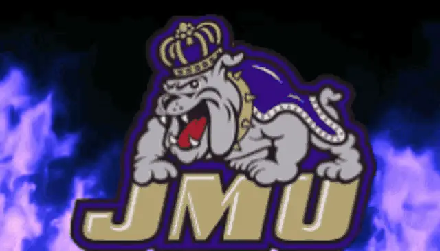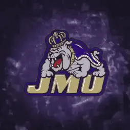 The official logo for the James Madison University (JMU) Dukes, featuring a bulldog mascot with a crown.