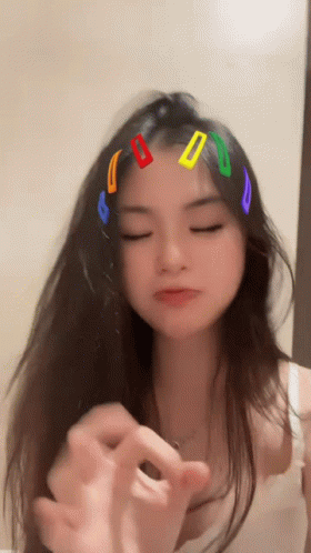 Jocelyn Joomblo making an 'OK' gesture, adorned with vibrant colorful hair clips in her long dark hair.