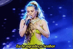 Joelma sings on stage, expressing gratitude to God with the caption 'Eu te agradeço Senhor'.