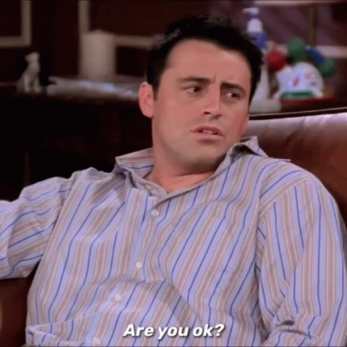 Joey Tribiani (Matt LeBlanc) on Friends asks 'Are you ok?' and wonders when the fajitas will be ready.