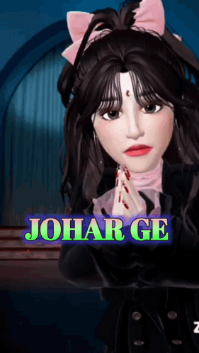 Animated avatar Sorenbiki, with a pink bow and bindi, offers a 'Johar Ge' greeting.