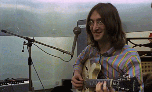 John Lennon playing an Epiphone Casino guitar during the iconic Get Back recording sessions.