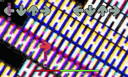 a screenshot of a video game with a colorful background and a red arrow .