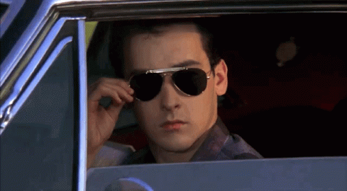 John Wink, wearing cool sunglasses, looks out of a car window with a mysterious and stylish demeanor.