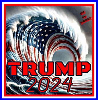 Stylized American flag wave with 'Trump 2024' text, created by Johncarlroat Johncarlduck.