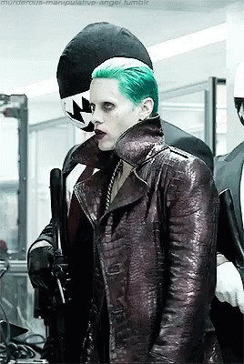 Jared Leto as the Joker from Suicide Squad, featuring his iconic green hair and distinctive costume.