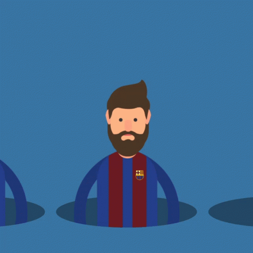 Jolliffe Alwin's animated Messi-like character pops out of holes, with references to Pique, Cristiano Ronaldo, and Virgil Van Dijk.