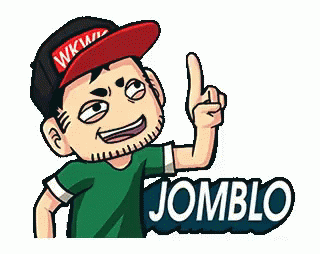 Animated Jomblo Brogaul character smiling, wearing a cap and green shirt, raising his fist in celebration.