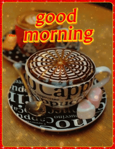 A beautifully decorated cappuccino with 'good morning' text, perfect for a cheerful start to the day.