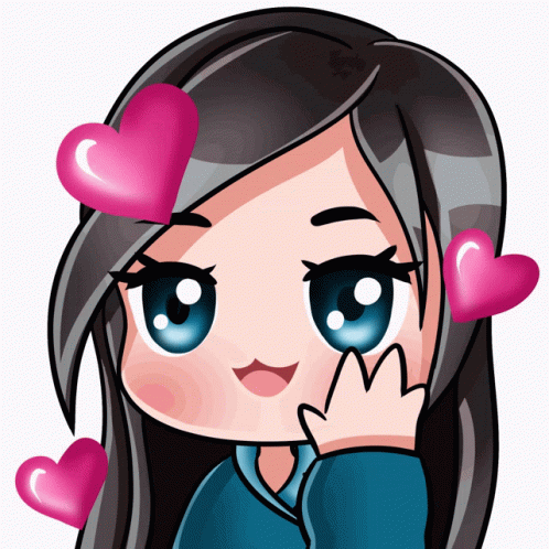 Animated chibi girl Joudy (جودي) with hearts, waving hello. A cute emote featuring Joudy.