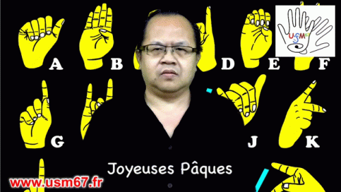 A man signs 'Happy Easter' in French Sign Language (LSF) for USM67 Deaf67.