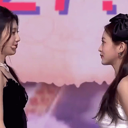 Joyri and Rv share a sweet moment, looking at each other and smiling.