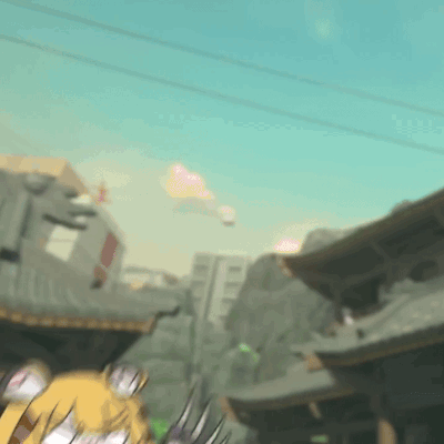 a blurry picture of a city with buildings and a blue sky in the background