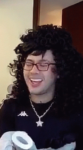 Juan De Dios Pantoja (JD Pantoja) laughs heartily while wearing a wig and holding toilet paper.