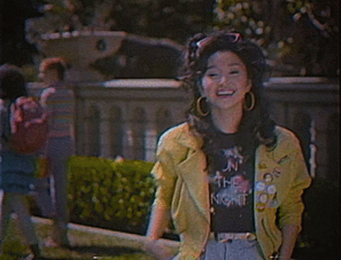 Jubilee, dressed in a retro yellow jacket and 'On The Night' shirt, smiles and waves hello.