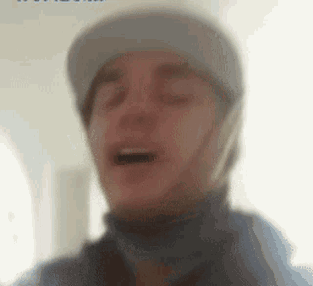 Juho, a blurry man in a hat with a bandage, appears to be singing Baka Mitai.